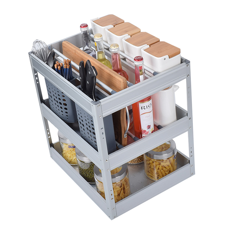 Space aluminum kitchen pull basket aluminum alloy integral cabinet seasoning basket damping track? with in-car storage rack drawer storage box type