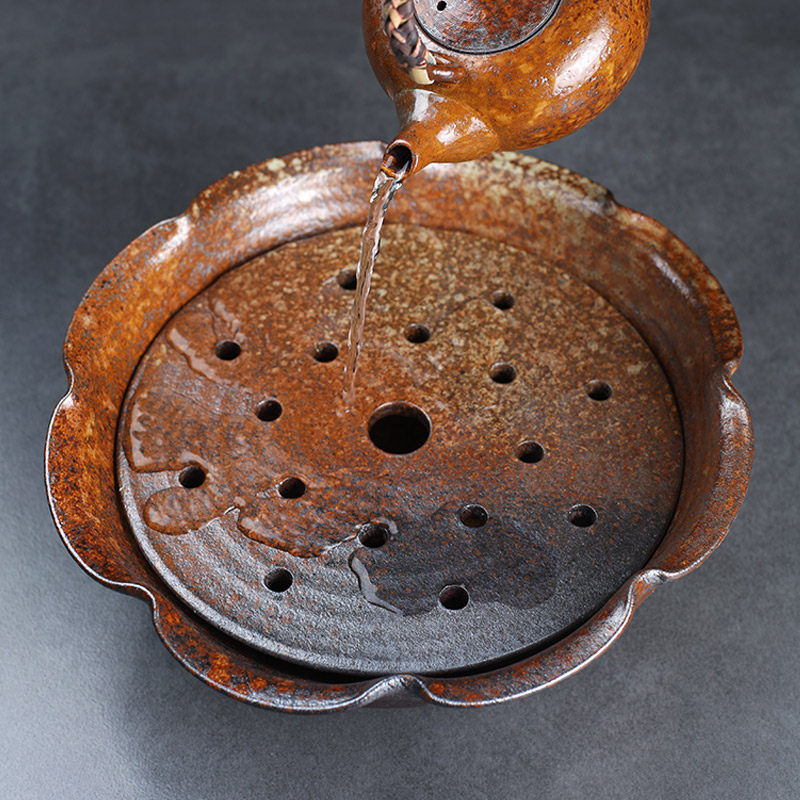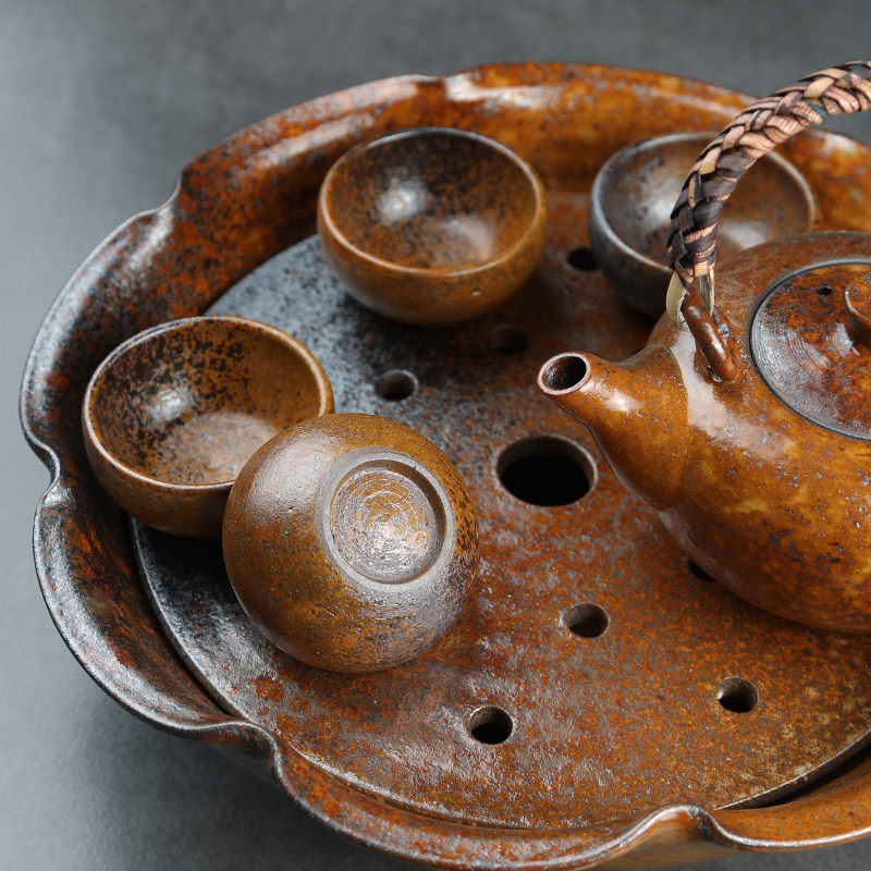 Day Style Kongfu Tea Furniture Set Group Handmade Antique Ceramic Tea Ware Sets Coarse Pottery Home Tea Tray Tiapot Cups