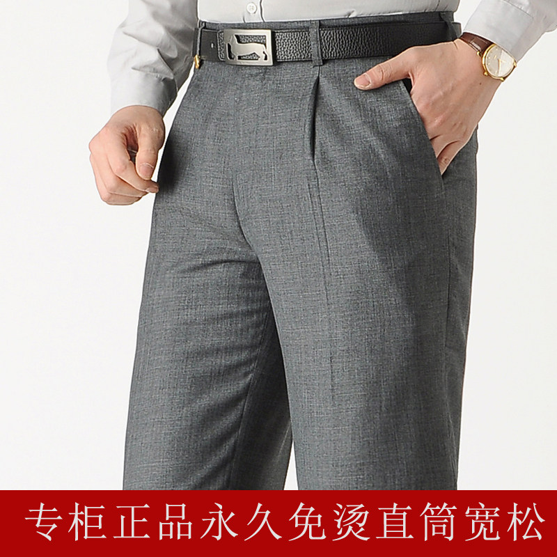 Woodpecker double pleated trousers men's summer thin middle-aged high-waisted pants for Dad straight loose suit pants