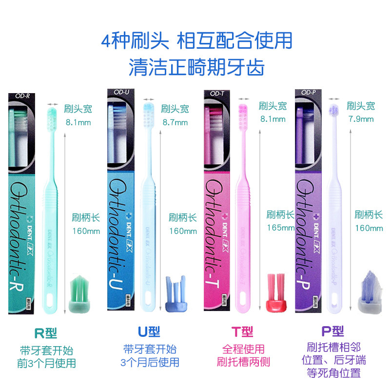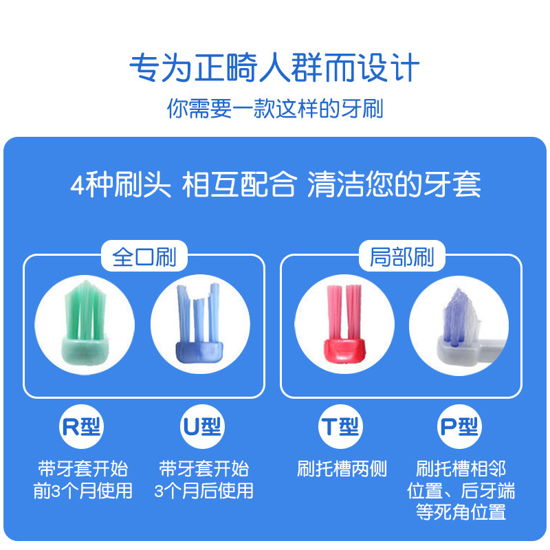 U-shaped main brush (3 months after braces)P-shaped auxiliary brush (full use) R-shaped main brush(within 3 months after braces)T-shaped auxiliary brush(full use)U-shaped main brush Lion Orthodontics
