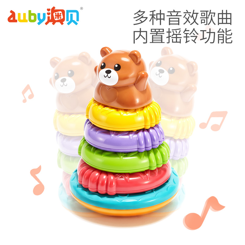 Aube Bear Stacking Hoop Baby Stacking Fun Children's Educational Hoop Rainbow Hoop Toy Baby Snare Snare Stack