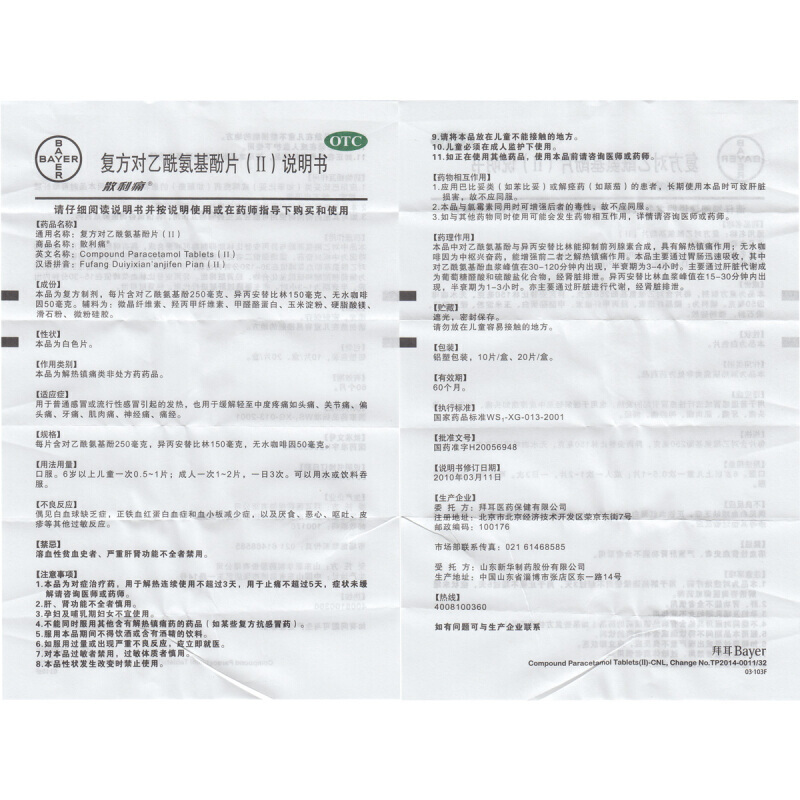 Sanlitong Compound Acetaminophen Tablets 20 Tablets Fever, Fever, Headache, Muscle Pain Relief Drugs Through Joints