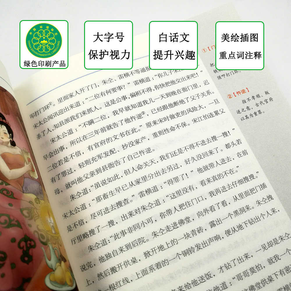 Water Margin Teenagers Edition Color Painting Notes Modern Vernacles Recommendation 7-15-year-old Primary and middle school students' extracurbary books Chinese traditional literature legends stories Books Language Accessibility Inspirational Editions of one of the four major names
