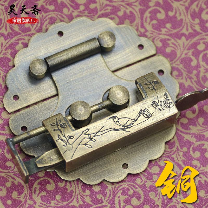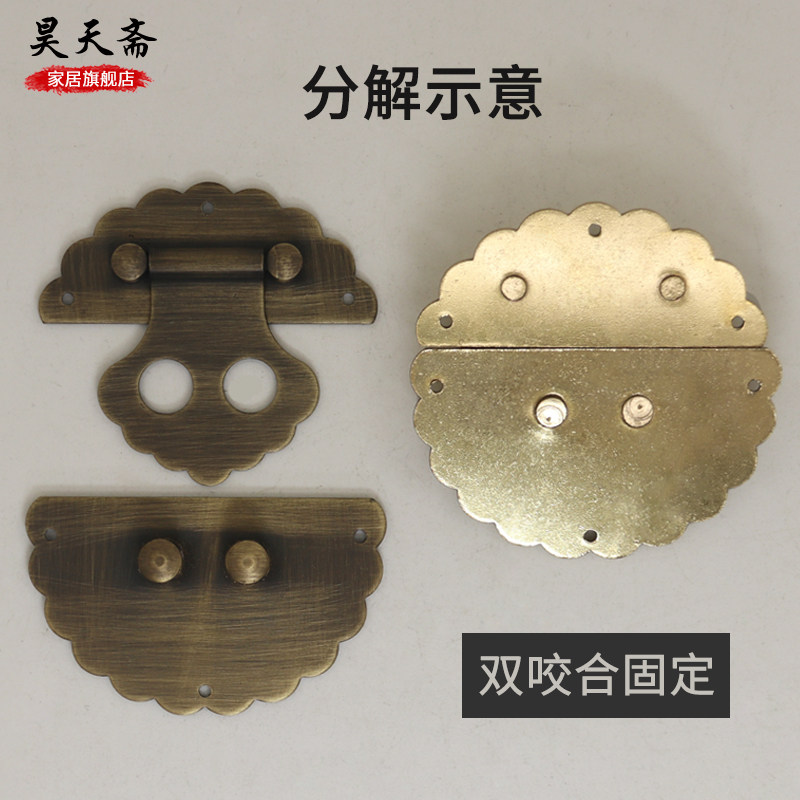 Haotianzhai Pure copper plain buckle box buckle Chinese antique jewelry box accessories with lock kit Old-fashioned retro