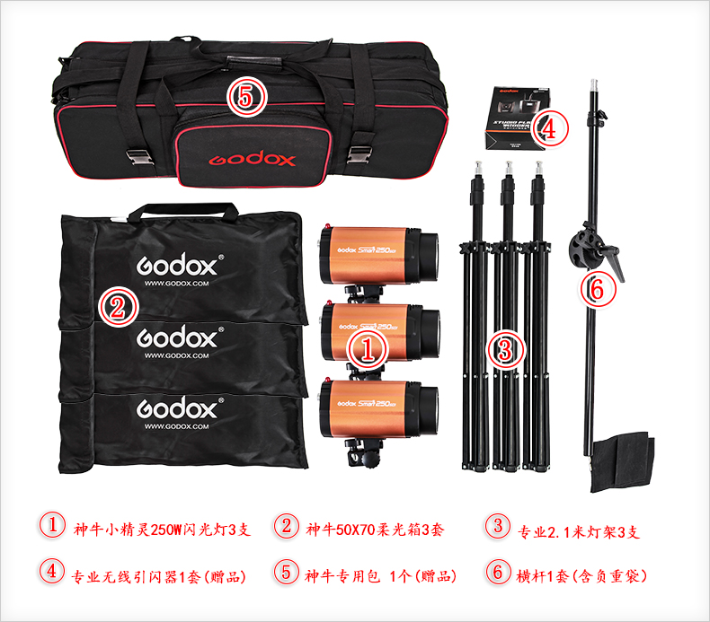 God Bull 250W Little pixie Photographic lamp Three lights fit Ceiling Light Suit Soft Light Box Photographic Equipment Photo Studio Portrait