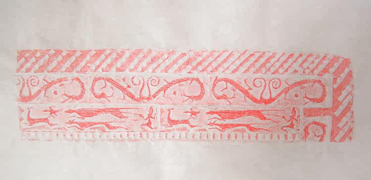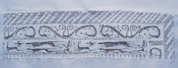 Han brick rubbings ----- Han "Ssangyong tail, dog chasing deer" portrait brick original extension sketch