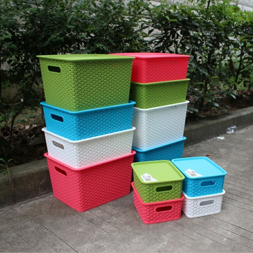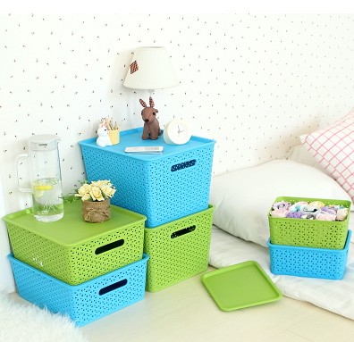 Kindergarten school covered plastic superimposed storage box hollow cosmetics desktop storage basket clothes finishing