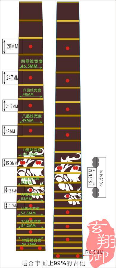 Guitar fingerboard stickers for a plate of: