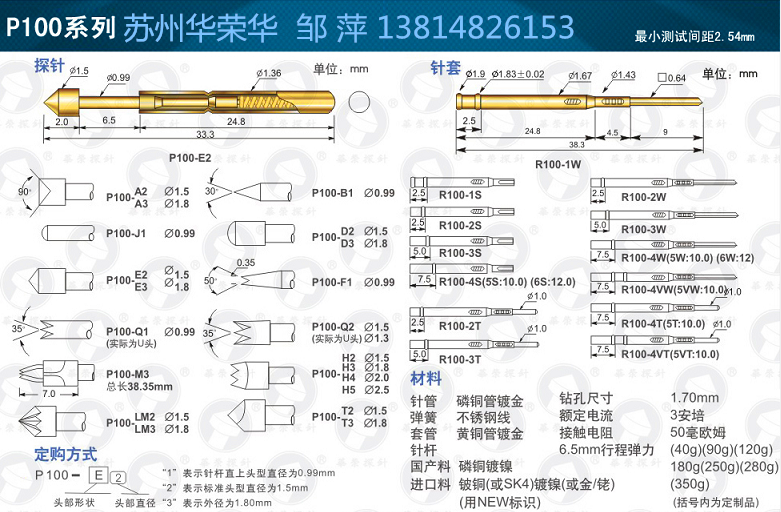Huarong probe PA100--E2 spring needle test needle PA100-E conical 1 5MM thimble PCB probe