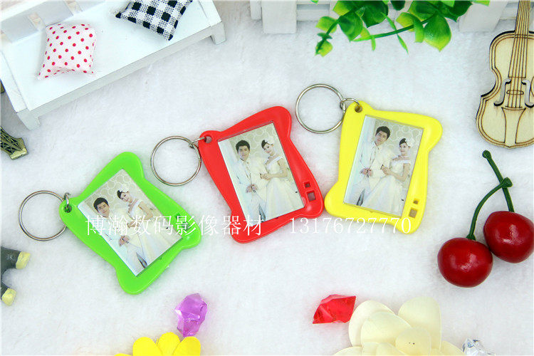 Hot Sell Red Green Yellow 2 Inch Color Photo Photo Gallery Special Key Buckle Promotional Gift DIY Pendant