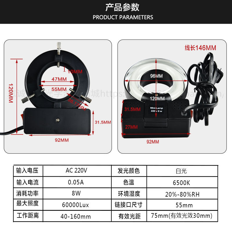 Microscope minilamp220V8W fluorescent light source black four-pin inner diameter 55mm ring light white high quality
