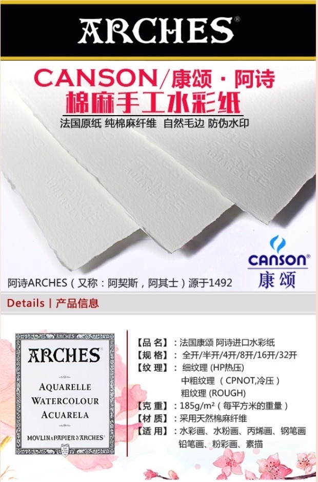 Epic watercolor paper Arches watercolor this postcard 300g thick mid-thickness 18 * 26cm23 * 31