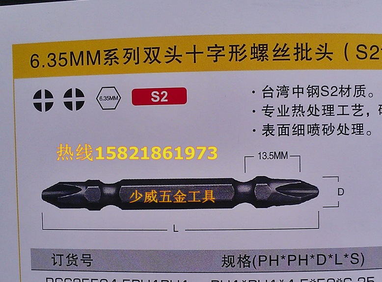 Underway electric batch head double head cross-head screwdriver head screwdriver head PH2 *PH2 * 100 *S6 35