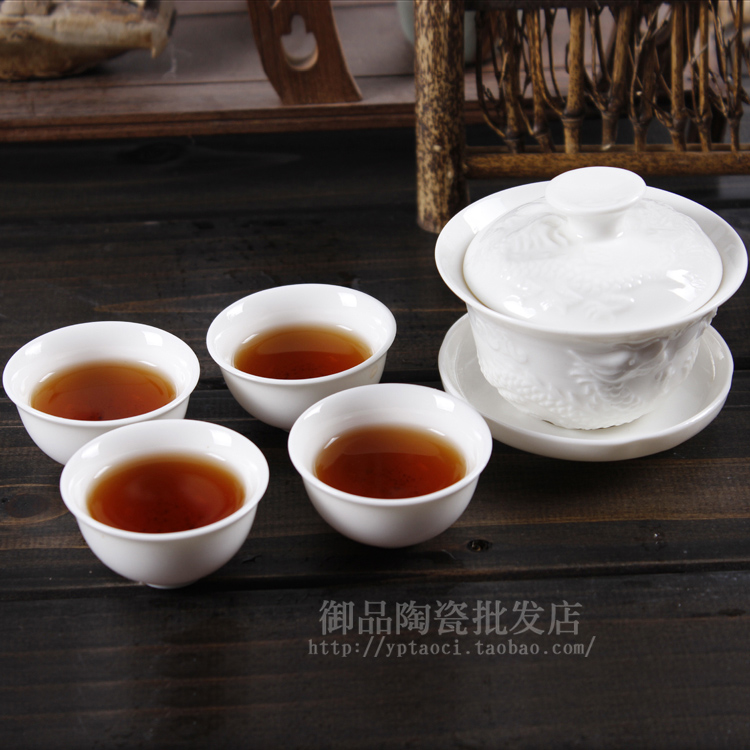 Bone china Ruyi pot to send 4 bone china tea cups Bone china pouring Xi Shi pot to send 4 bone china tea cups Bone china relief dragon cover bowl to send 4 bone china tea cups