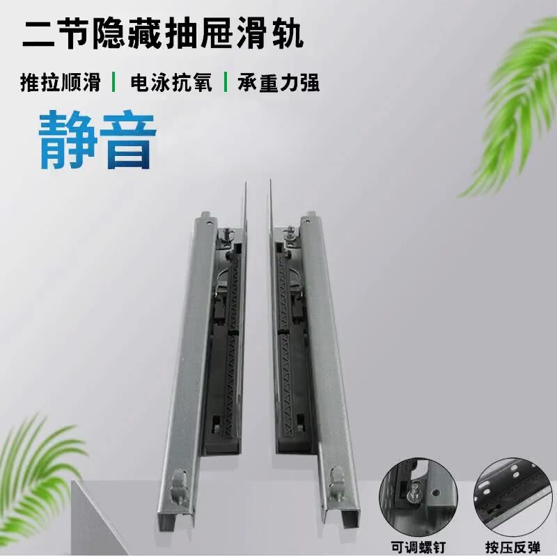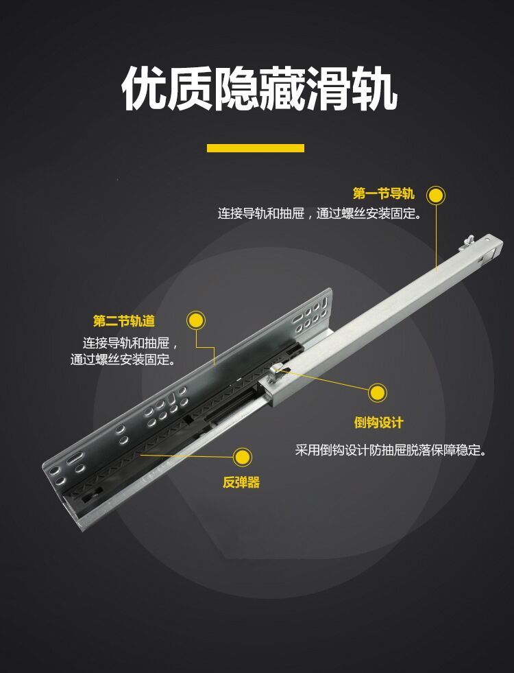 Bottom handleless two drawer rails bottom rail hidden rebound rail press bounce slide rail integral cabinet track