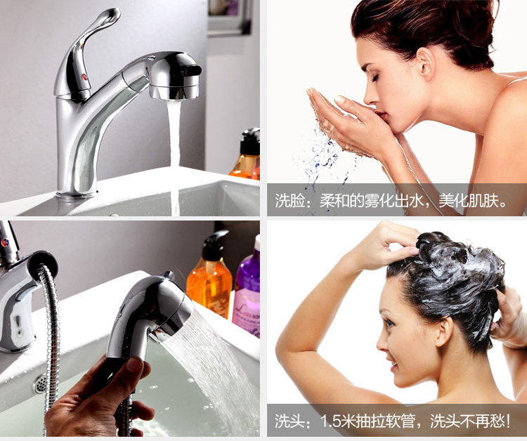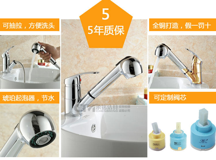 Full copper hot and cold kitchen surface basin pull-out tap with spray head telescopic multifunctional table basin washing head