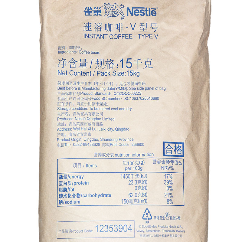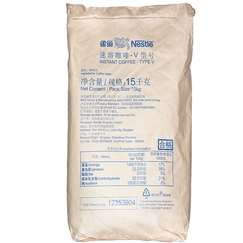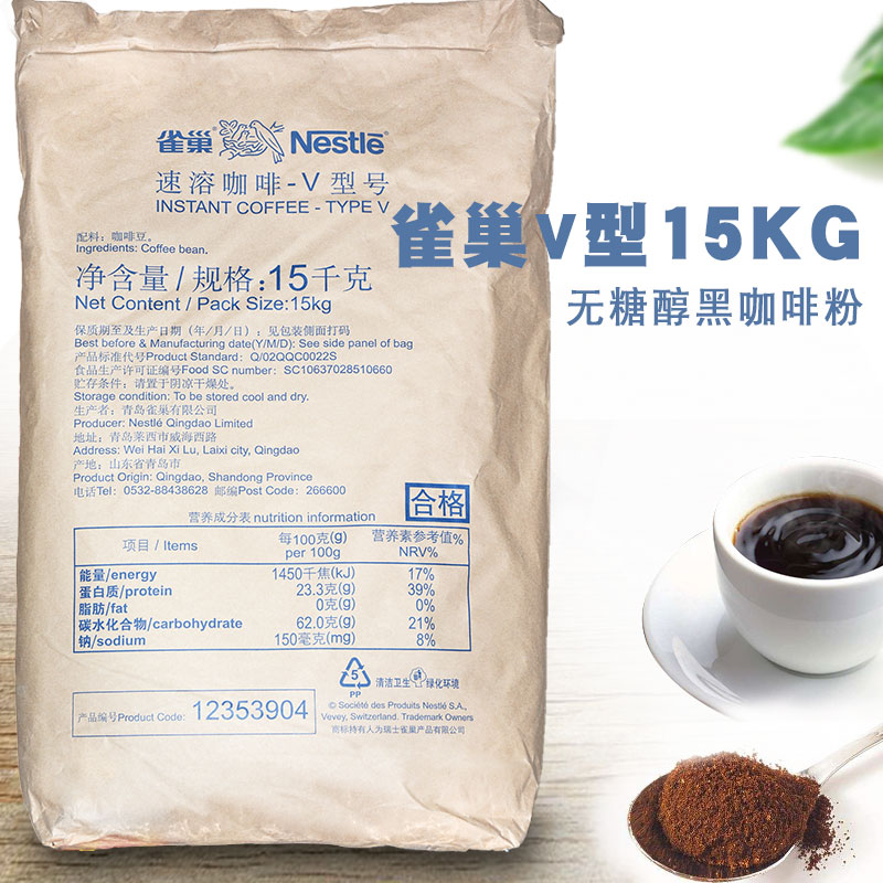 Qingdao Nestle coffee alcohol V-type instant coffee 15KG black coffee powder pure coffee espresso
