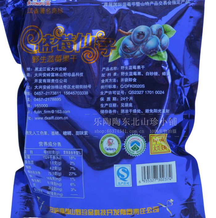 Wild blueberry dry Great Xing'an Ridge Wing rich blueberry fairies honey fruit Dry one bag 260 gr 2 sacks