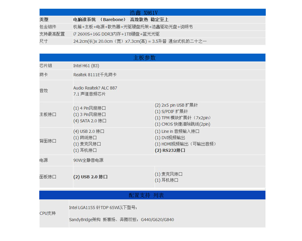 Haoxin Barebones XH61V Intel H61 DDR3 8GB