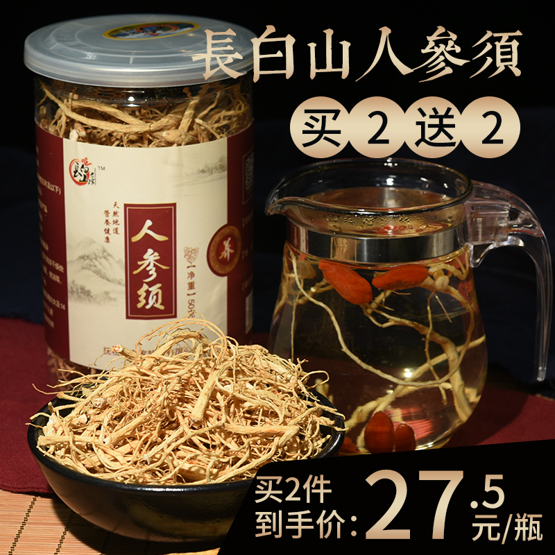 Changbai Mountain ginseng whiskers non-special grade 500g white ginseng whiskers can be beaten ginseng powder to make tea raw sun-dried ginseng whisker root