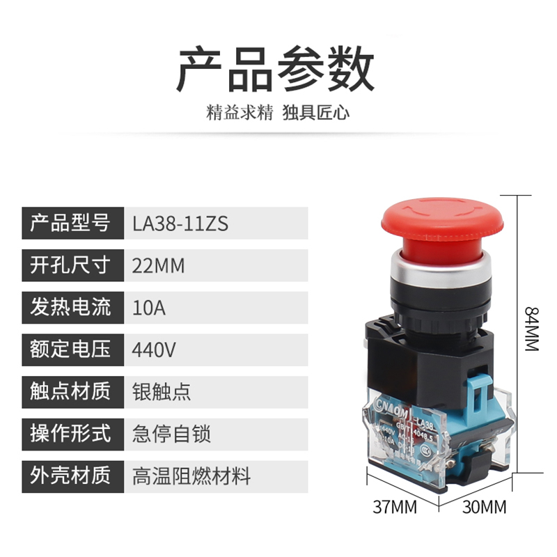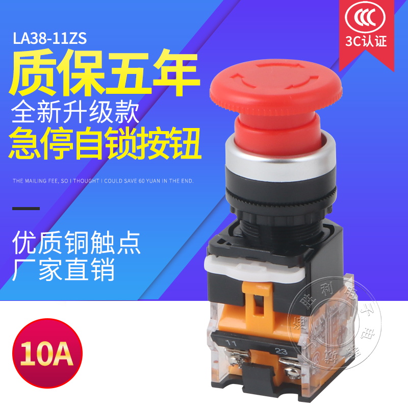 LA38-11ZS Power supply emergency stop button switch power supply start stop mushroom head self-locking emergency switch 22mm