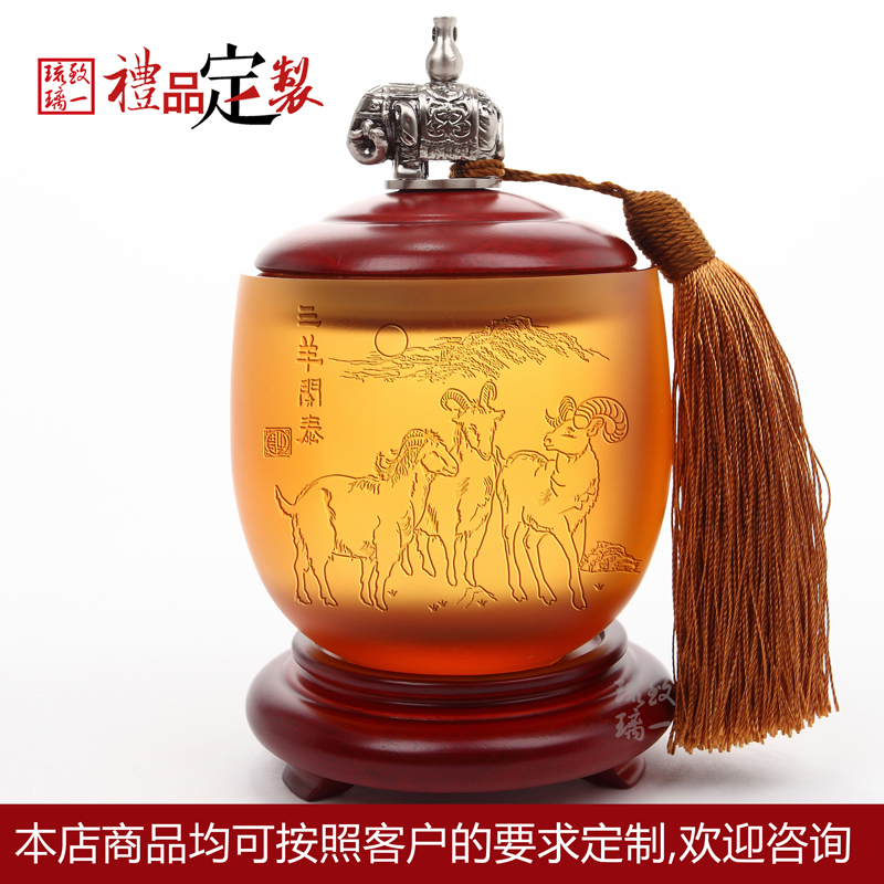 Glass tea caddy company high-end meeting business anniversary event gift to send customer handicraft souvenir customization