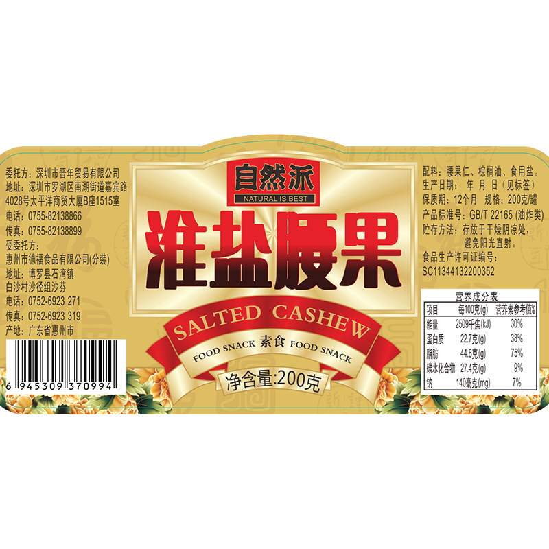 For details such as cashew nut edible vegetable oil salt, please see outer packaging