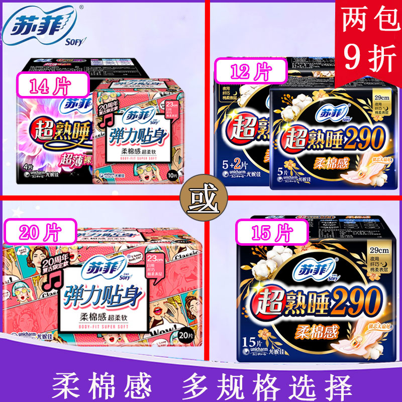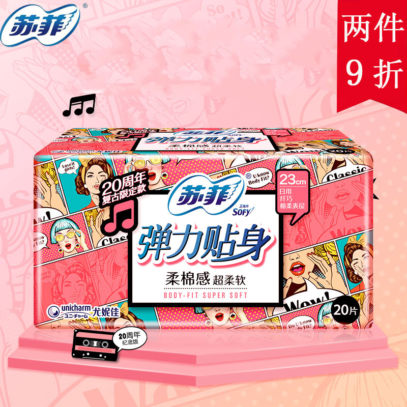 Sufi sanitary cotton elastic close-fitting daily cotton 230mm 20 pieces fit soft cotton organoleptic flagship Aunt towel