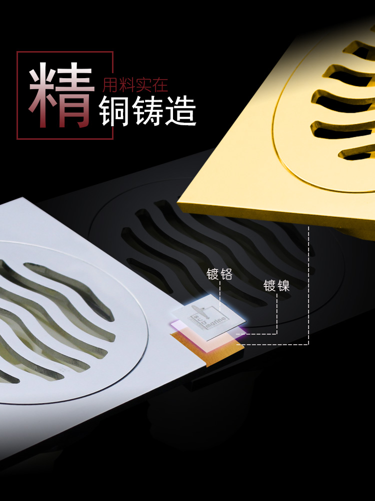 Diving Boat Floor Drain Makeup Room Shower Room Bathroom kitchen Balcony Sewer 50 Tube full copper deodorant Insect Repellent