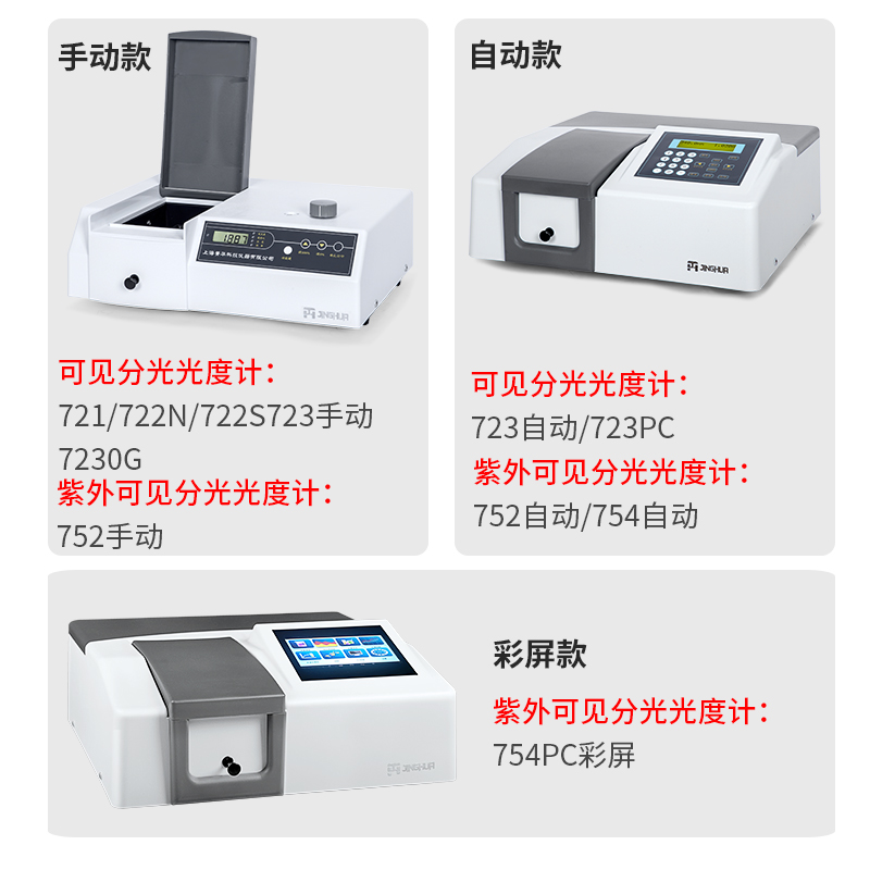 Visible light spectrophotometer 721 Visible light spectrophotometer 722N Visible light spectrophotometer 722S Visible light spectrophotometer 723 Manual visible light