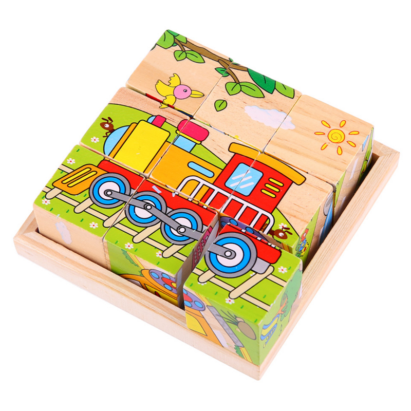 Solid 6 Face Painting Animal Fruit Car Puzzle Building Blocks Early Teach Young Children Puzzle Area Corner Middle Class Toy Material