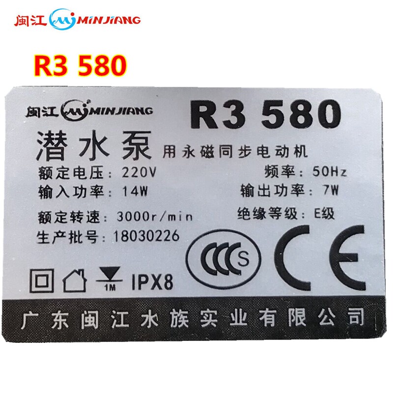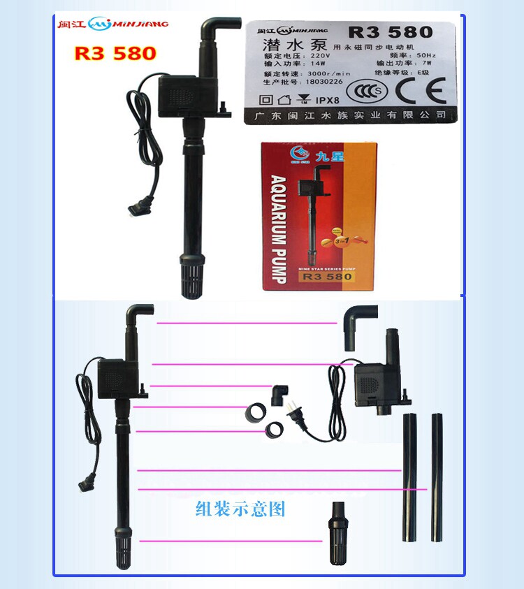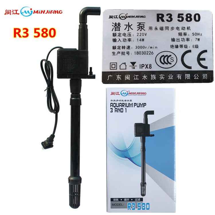 Minjiang submersible pump R3 580 oxygen spray pump multifunctional HR3 580 Minjiang Baolai fish tank three-in-one water pump
