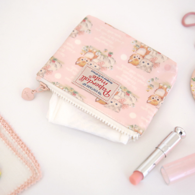 Korean afrocat cute sweet doll waterproof make-up makeup bag change mask sanitary napkin storage small bag