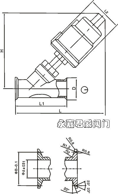 Positive 304 fast loading valve full stainless steel quick fit type pneumatic angle seat valve DN32 corner seat valve
