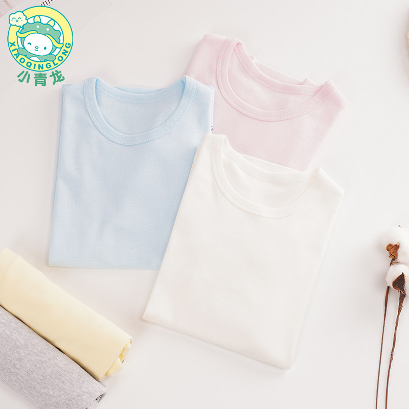 Small turquoise short sleeve shirt pure cotton male girl hit bottom pure sweatshirt full cotton rosby baby CUHK Tong T-shirt blouse