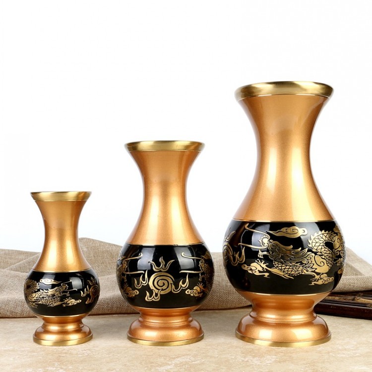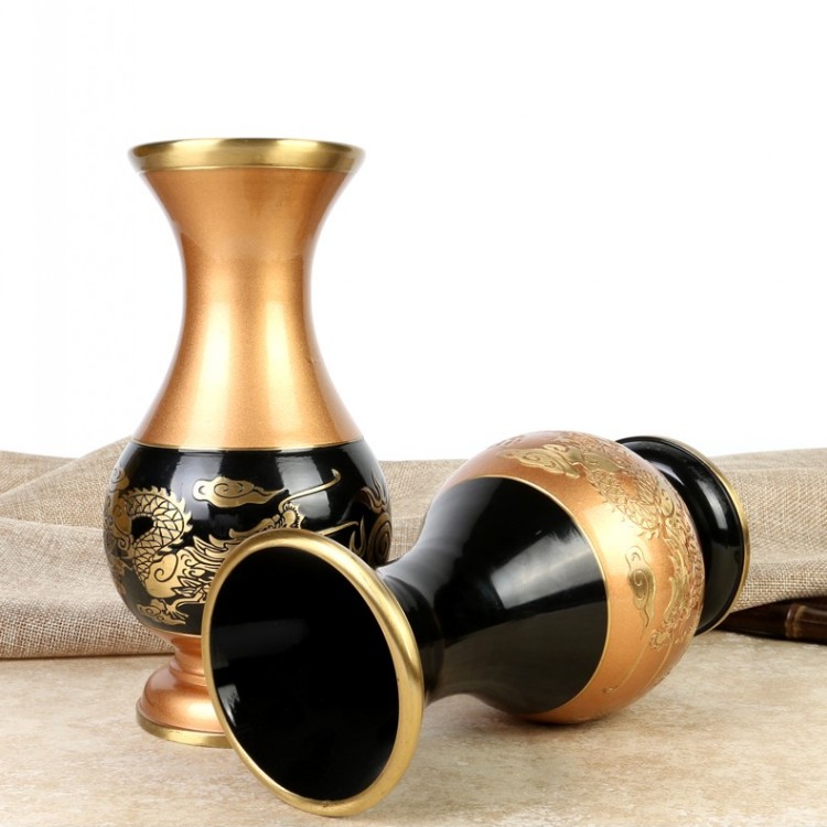 Taiwan Pure Copper Bicolor's Double Dragon Merchants Treasure Vase Buddha Hall Home Decoration For Fover Flowers Inserts Water Purification Bottle Tribute Bottle Hem