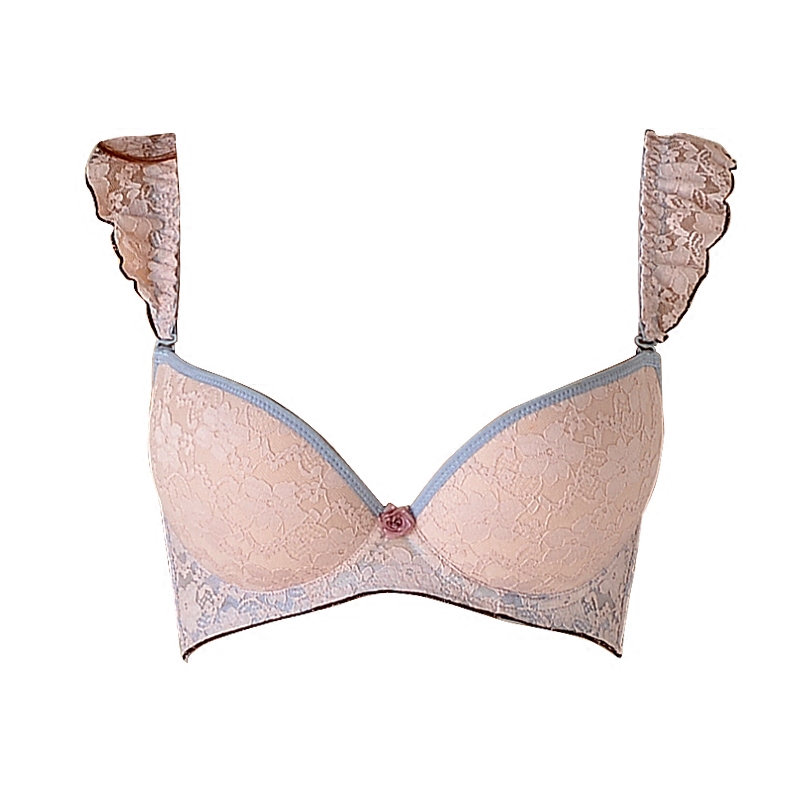 Elegant Lace Lotus Leaf Edge Thickened Air Cushion Small Chest Underwear Lady Sexy Deep V Coalesch Adjusted Underwear