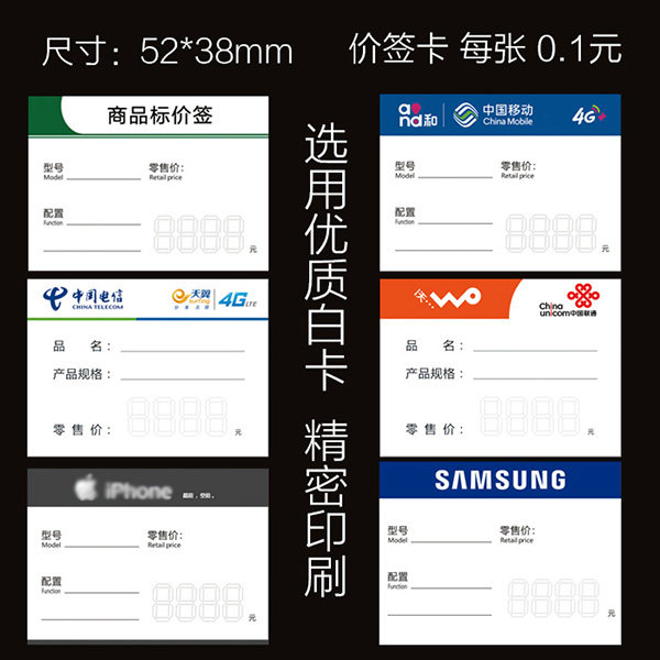 Universal 1 price tag cartoon 2 price tag card Mobile price tag card Unicom price tag card Telecom price tag card Apple price tag card Samsung price tag card Acrylic transparent price tag clip
