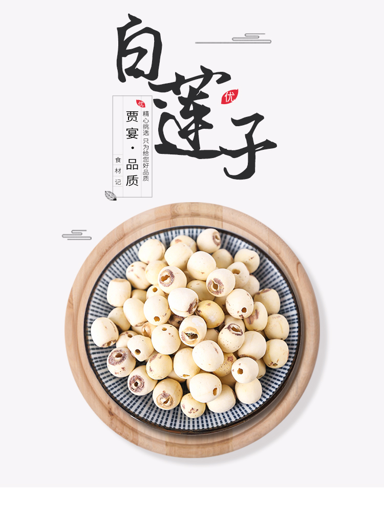 Non-core white lotus seed 100g dry stock Go to heart mill leather Xianglian rice cooker porridge with silver ear lilium and red date medlar soup