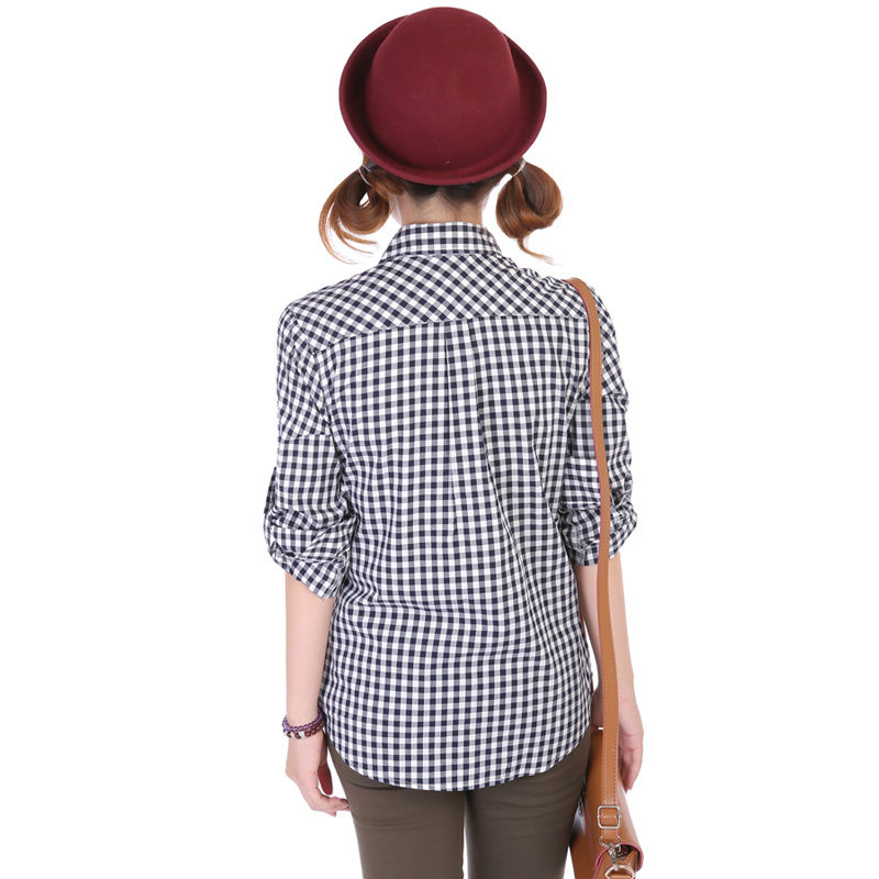 Rich wood women's autumn Japanese cotton long-sleeved plaid shirt women's shirt CF4140