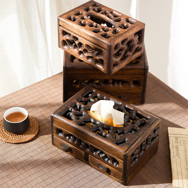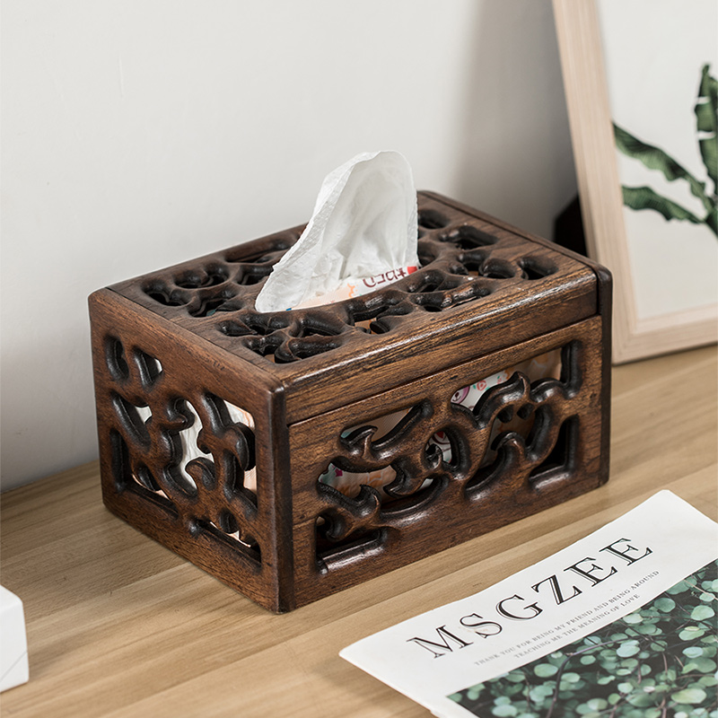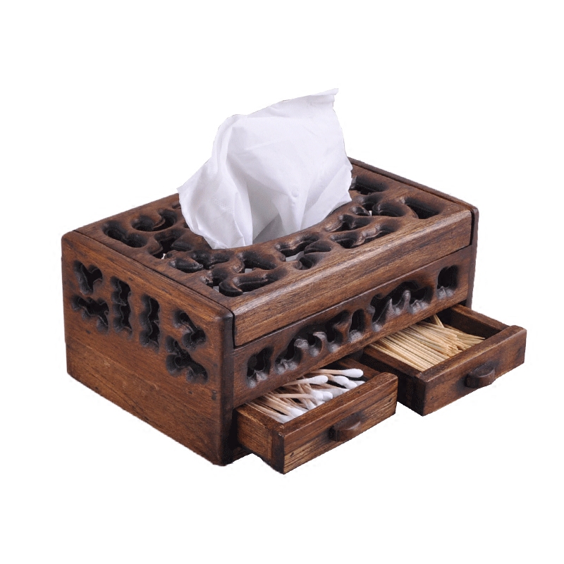 Thailand imported solid wood multifunctional tissue box sanitary paper box living room Chinese napkin paper box retro wooden removable sanitary paper box