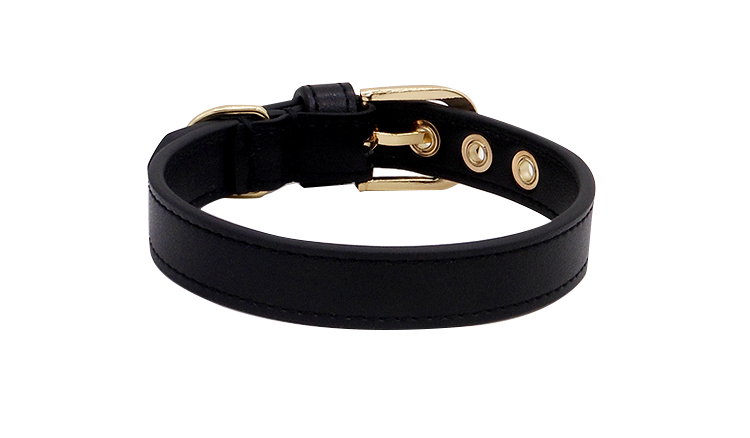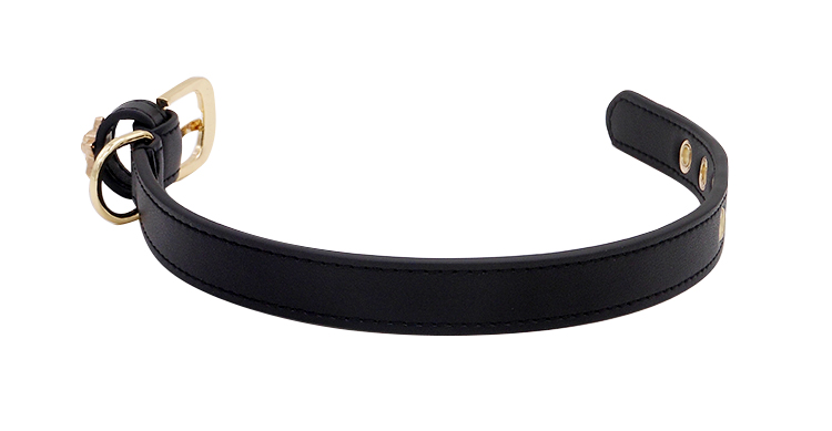 Black Calf Leather Chille Genuine Leather Pet Item Ring Teddy Poodle Cat Dog Bell Necklace