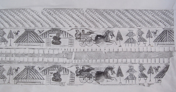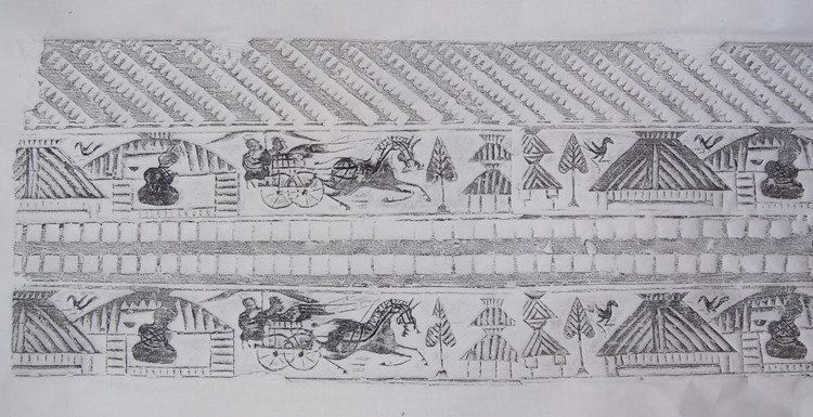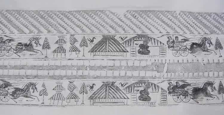 There is no juvenile affair in the chest, and there are cars and horses in front of the door---- Han "sit-in and travel" portrait brick original Tuo