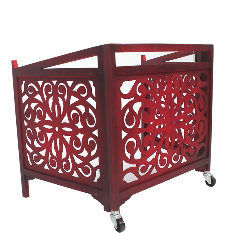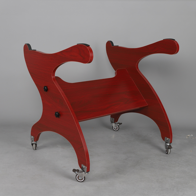 Violin box One square leg red shelf One cylindrical red shelf One dark color tripod One light color tripod One square leg white shelf One cylindrical black shelf One