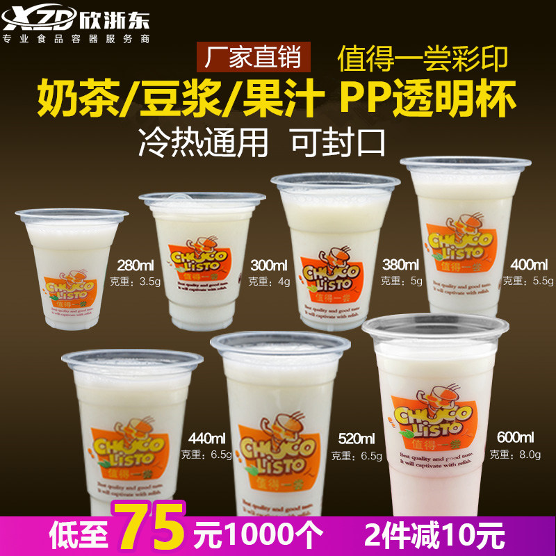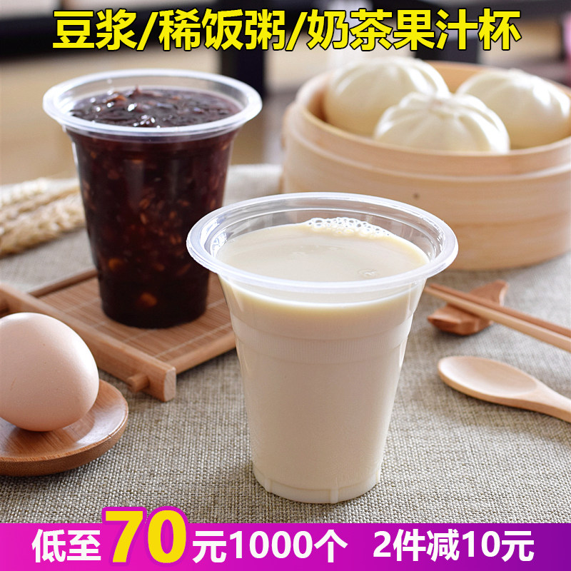 Disposable soy milk cup plastic transparent 300ml porridge porridge packaged sealing cup drink worth a taste milk tea cup