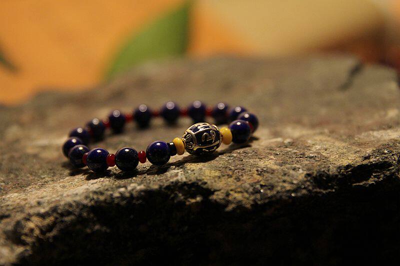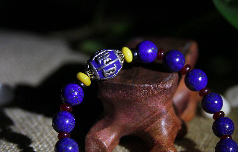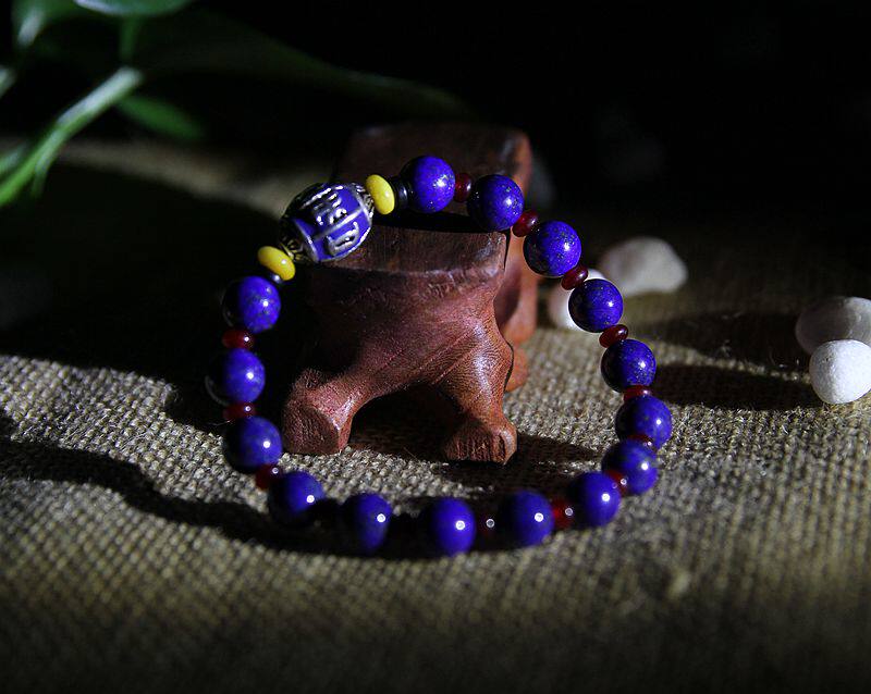 Pure Natural 4A Azure Gold Stone Handmade Women's Bracelet 8mm Agate Sterling Silver Six Word Truth Sky Blue Gemstone