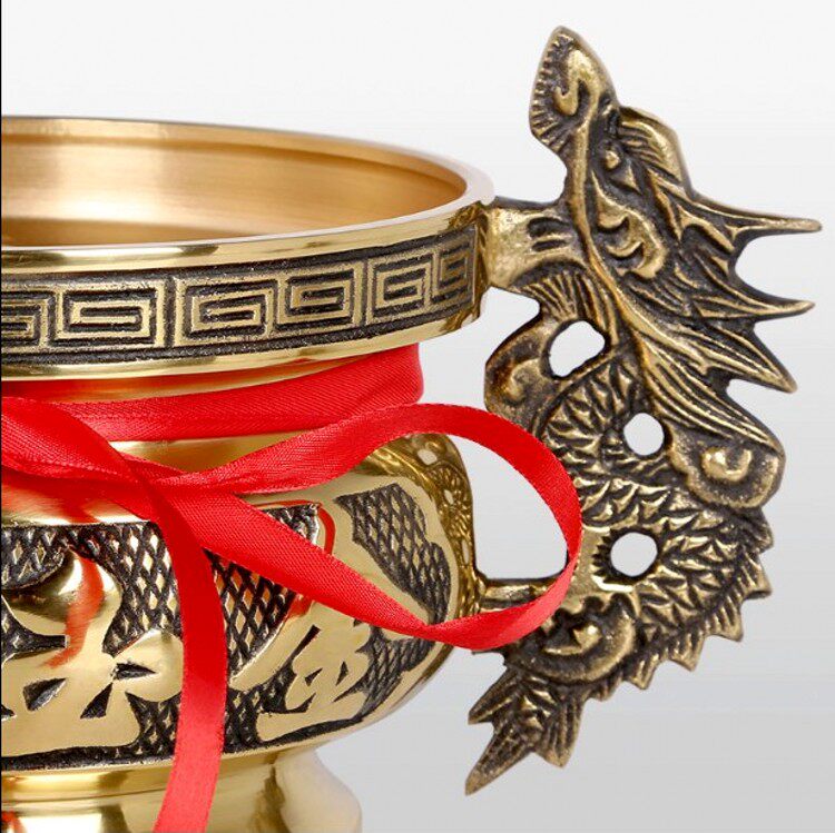 Buddha supplies Buddhist supplies for furnace line incense furnace incense insert 7 inch Sshuanglong ear to attract money gold jade pure copper incense furnace
