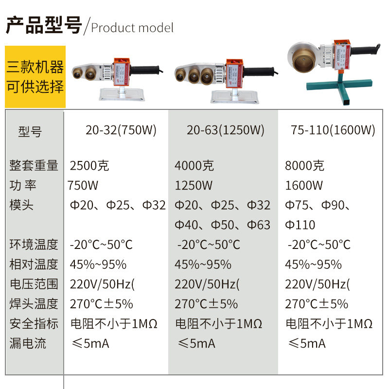 20-32 (750W) 20-63 (1250W) 75-110 (1600W) 20-32 (2018 new top die)