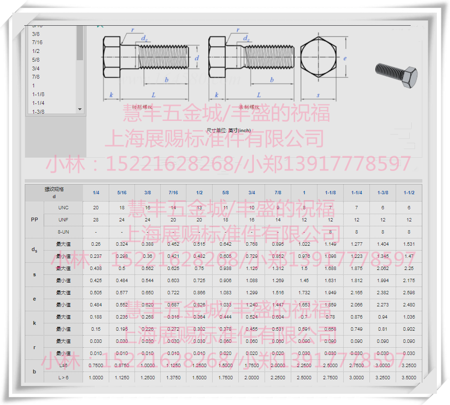 Blackened 5th grade American screw American hexagon screw 8 8th grade inch hexagon head 5 16-18=7 9mm