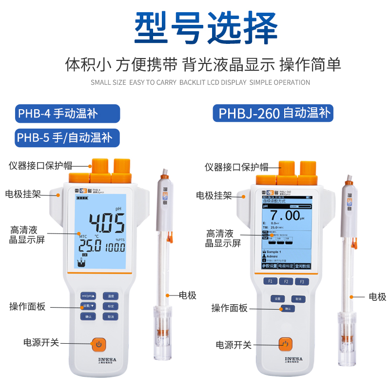 Portable Acidity Meter PHB-4 Portable Acidity Meter PHBJ-260 Portable Acidity Meter PHBJ-260F Portable Acidity Meter PHBJ-261L E-201-F Type Composite Electrode (2-in-1)